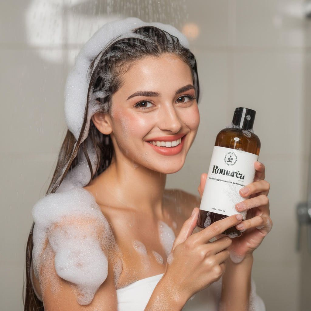 0 % d'alcool, 0 % de silicone, pH 5,5. Testé sur cuir chevelu psoriasique. Le romarin est anti-inflammatoire par essence. On calme d'abord, on fait pousser ensuite. Jamais l'inverse.